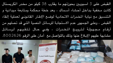 أبوظبي | القبض على عصابة “أسماك الكريستال” ألقت الشرطة القبض على 3 آسيويين بحوزتهم ما يقارب 38 كيلو من مخدر…