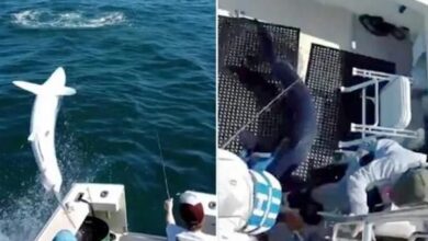 في لحظة مروعة لا يمكن توقّعها، فوجئ مجموعة من الصيادين بسمكة قرش ضخمة تقتحم نزهتهم البحرية وتقفز داخل قاربهم، حسبما…