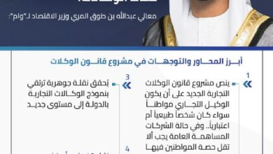 قال معالي عبد الله بن طوق المري وزير الاقتصاد إن مشروع القانون الاتحادي الجديد في شأن تنظيم عمل الوكالات التجارية…