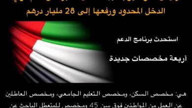 وجه صاحب السمو الشيخ محمد بن زايد آل نهيان رئيس الدولة “حفظه الله” بإعادة هيكلة “برنامج الدعم الاجتماعي لمحدودي الدخل” ليصبح برنامجاً…