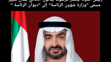 رئيس الدولة يصدر مرسوما بقانون اتحادي بشأن تغيير مسمى “وزارة شؤون الرئاسة” إلى “ديوان الرئاسة “