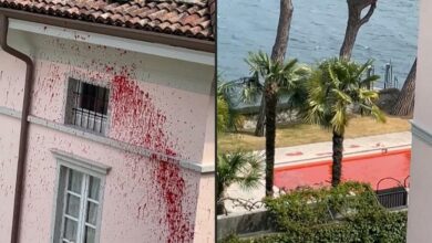 تم طلاء فيلا المذيع الروسي فلاديمير سولوفيف التي تقع في إيطاليا على بحيرة كومو باللون الأحمر وصبغ حمام السباحة الخاص…