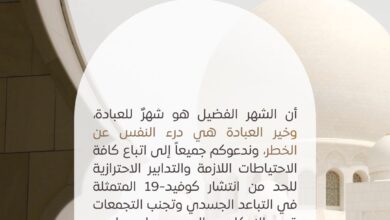 اعلان الطوارئ والأزمات.. عن تحديثات على بروتوكول تنظيم الصلاة في المساجد والمصليات لشهر رمضان المبارك